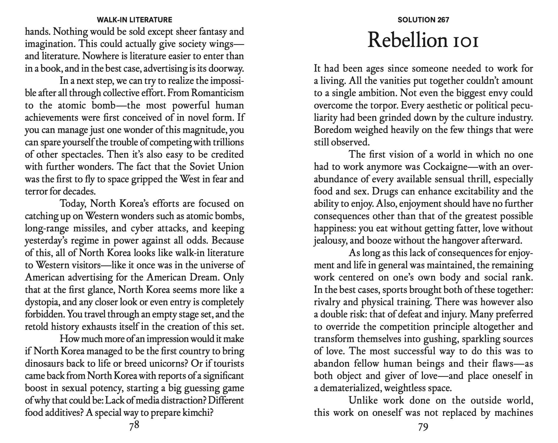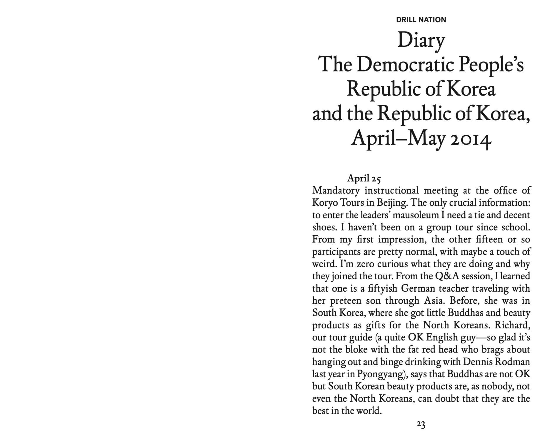 Having furnished solutions for Germany and Dubai, Ingo Niermann takes a new look at what nationhood can mean and accomplish today, finding inspiration, of all places, in North Korea. Now that the promise of global prosperity and abundance can technically be fulfilled, the time has come for a minimalist rethink of society. By relying on drills and a principle of reduction, the individual can be granted a freedom for experiences and ideas that are not possible otherwise. The more we simplify, the lighter the ballast we’ll have to carry.
