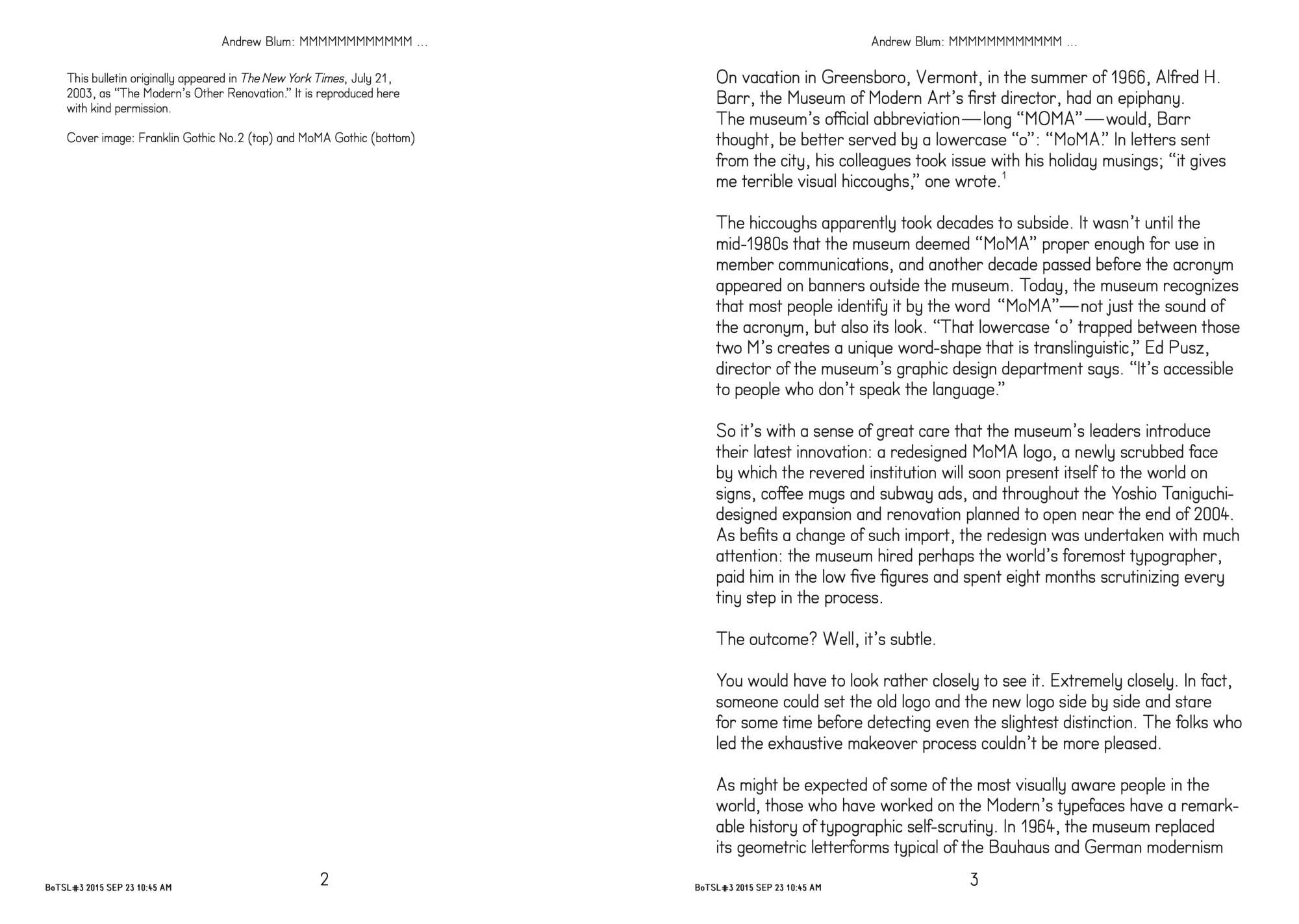 This issue of Bulletins of the Serving Library doubles as a catalogue of sorts to “Ecstatic Alphabets/Heaps of Language,” a group exhibition curated by Laura Hoptman at the Museum of Modern Art, New York, from May 6 to August 27, 2012. It is a *pseudo*-catalogue in the sense that, other than a section of images at the back, it bears no direct relation to the works in the exhibition. Instead, the bulletins extend in different directions from the same title, and could be collectively summarized as preoccupied with the more social aspects of Typography.