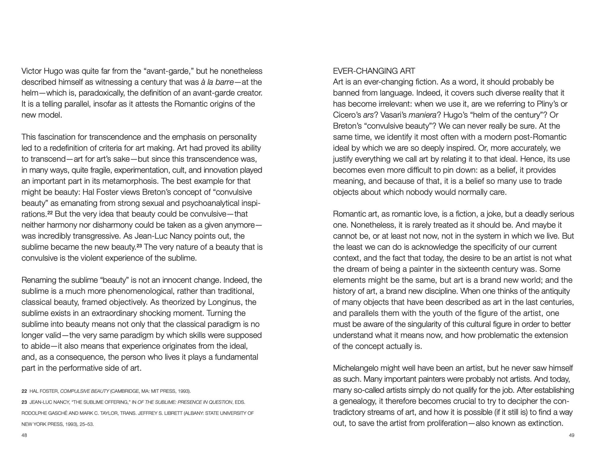 In the last two hundred years, “art” has become one of the most fetishized concepts in Western civilization. The idea according to which certain people—also known as artists—would provide the world with their inner vision is a modern myth, but has proved to be a contemporary reality. Today, this post-Romantic conception is challenged by recent geographical and demographic explosions. Being an artist is often seen as an activity, a position, even a “job”—contrary to its first definition at the beginning of the nineteenth century.