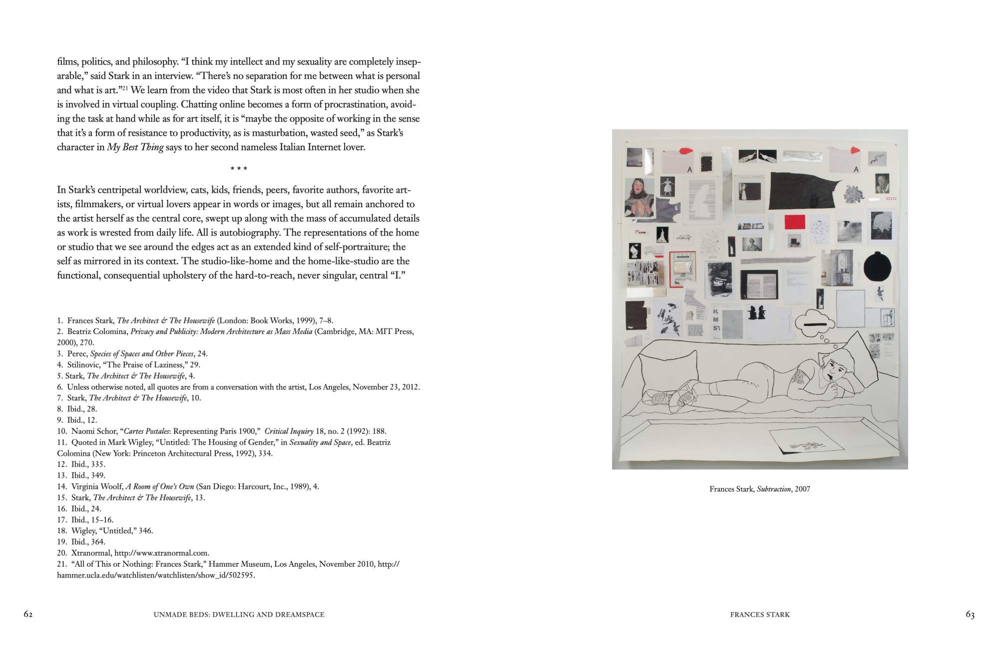The artist’s house is a prism through which to view not only the artistic practice of its inhabitant, but also to apprehend broader developments in sculpture and contemporary art in relation to domestic architecture and interior space. Based on a series of interviews and site visits with living artists about the role of their home in relation to their work, Kirsty Bell looks at the house as receptacle, vehicle, model, theater, or dream space. In-depth analyses of these contemporary examples—including Jorge Pardo, Miroslaw Balka, Danh Vo, Gregor Schneider, Frances Stark, Marc Camille Chaimowicz, Dominique Gonzalez-Foerster, Pawel Althamer, Mark Leckey, Monika Sosnowska, Gabriel Orozco, Rirkrit Tiravanija, and Andrea Zittel—are contextualized by key artists of the twentieth century such as Kurt Schwitters, Alice Neel, Edward Krasiński, Carlo Mollino, and Louise Bourgeois. A two-way flow from the domestic arena to the exhibition space becomes apparent, in which the everyday has a significant role to play in the merging of such developments as installation art, relational aesthetics, expanded collage, and performance art.