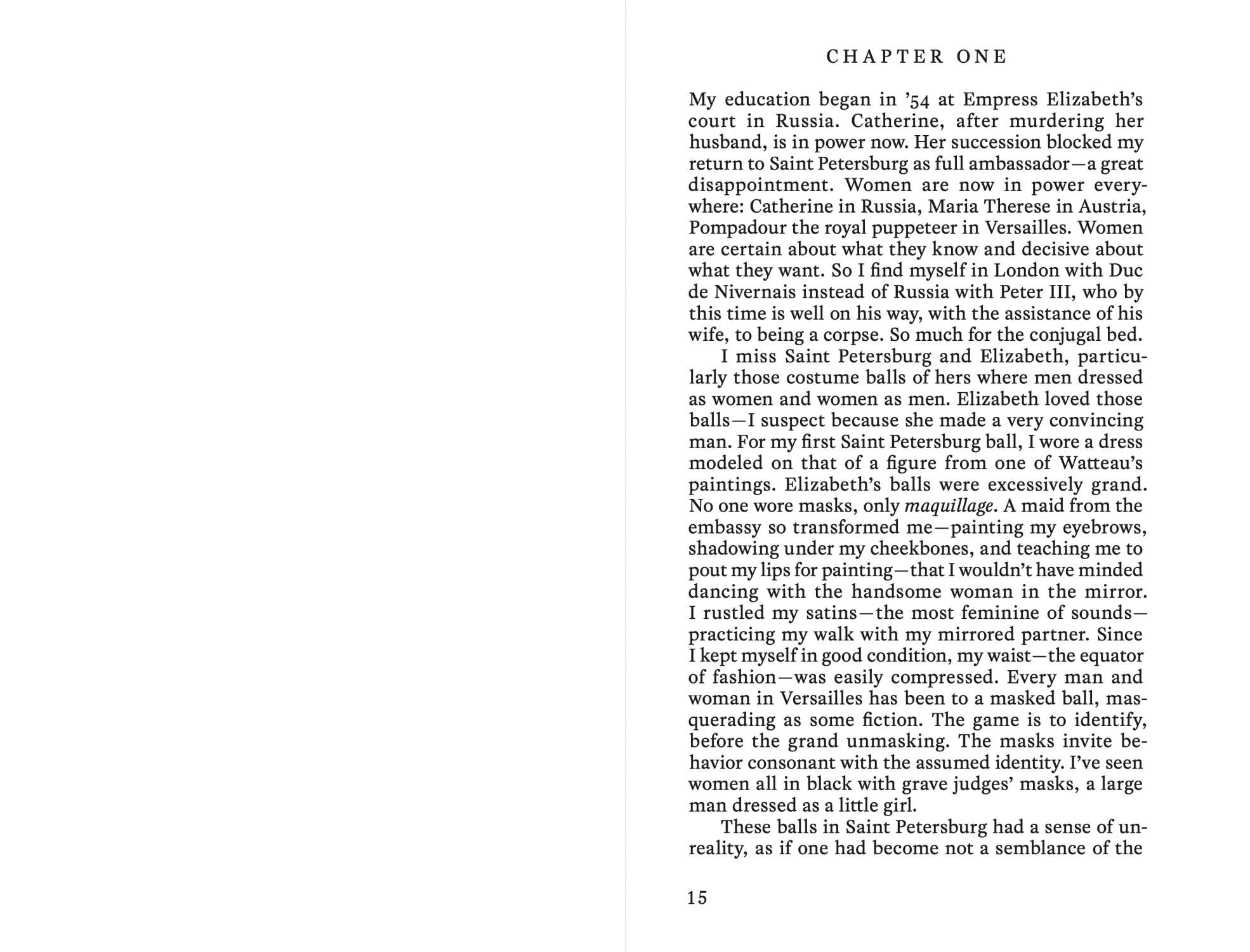 Who is the author? Is it Mary Josephson, critic for Art in America? Sigmund Bode, creator of the legendary fifth issue of Aspen? William Maginn, the pseudonymous writer? Or the artist Patrick Ireland, who was buried in Dublin in 2008? Which voice makes itself heard in these memoirs of the most famous secret agent of the eighteenth century? From which body emanates the voice of the Chevalier d’Eon, the most troubling gender illusionist of the dawn of the Revolution? Only Brian O’Doherty, an artist of multiple personas, could give this epic narrative the singular resonance and irony that makes a great historical novel.