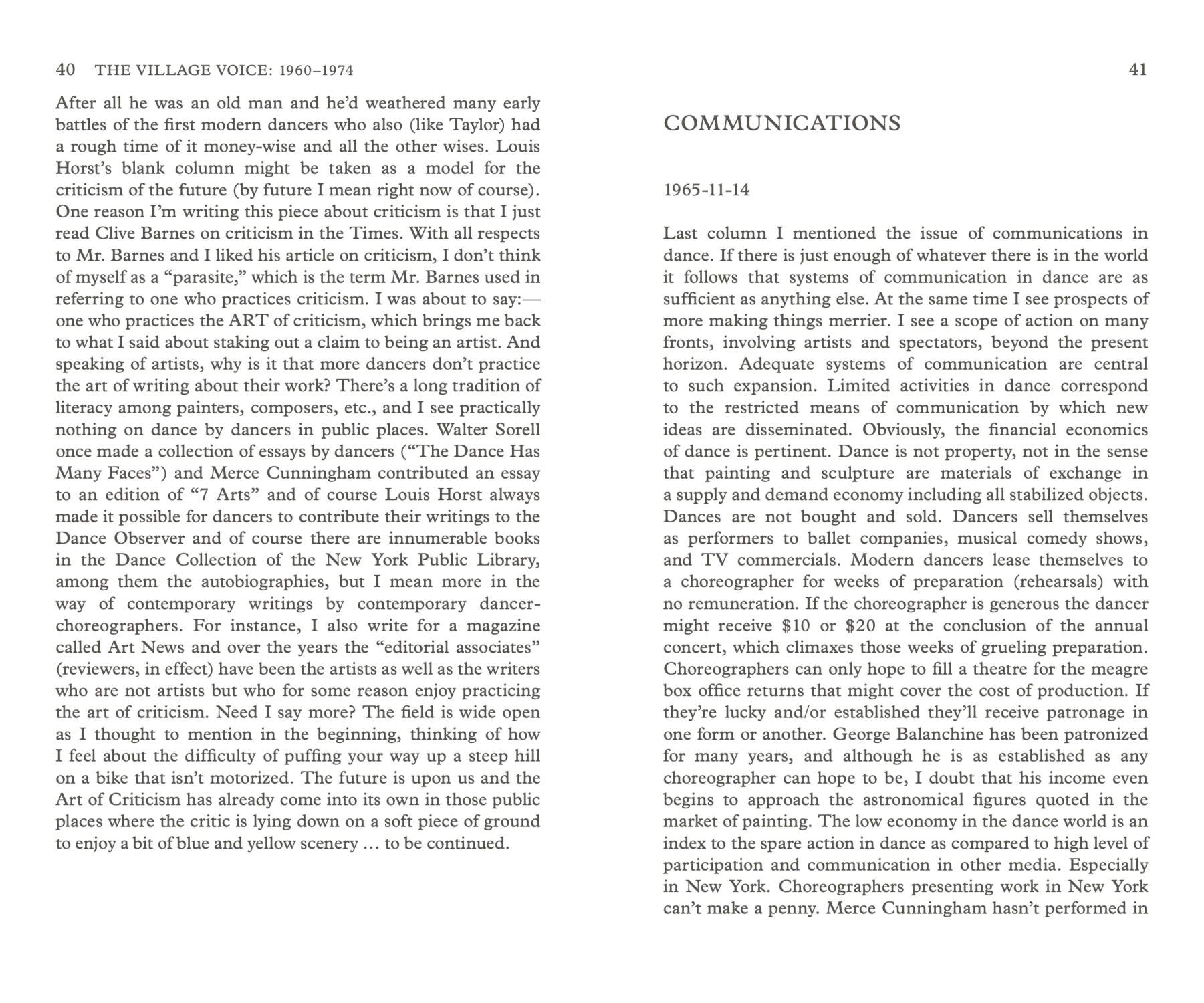 Jill Johnston—cultural critic, auto/biographer, and lesbian icon—was renowned as a writer on dance, especially on the developments around Judson Dance and the 1960s downtown New York City scene, and later as the author of the radical-feminist classic Lesbian Nation (1973). This book collects thirty texts by Jill Johnston that were initially published in her weekly column for The Village Voice between 1960 and 1974. The column provided a format in which Johnston could dissolve distinctions between the personal, the critical, and the political. Her writing took turns and loops, reflecting its times and contexts, and set a stage for the emergence of Johnston as a public figure and self-proclaimed radical lesbian that defied any prescribed position.