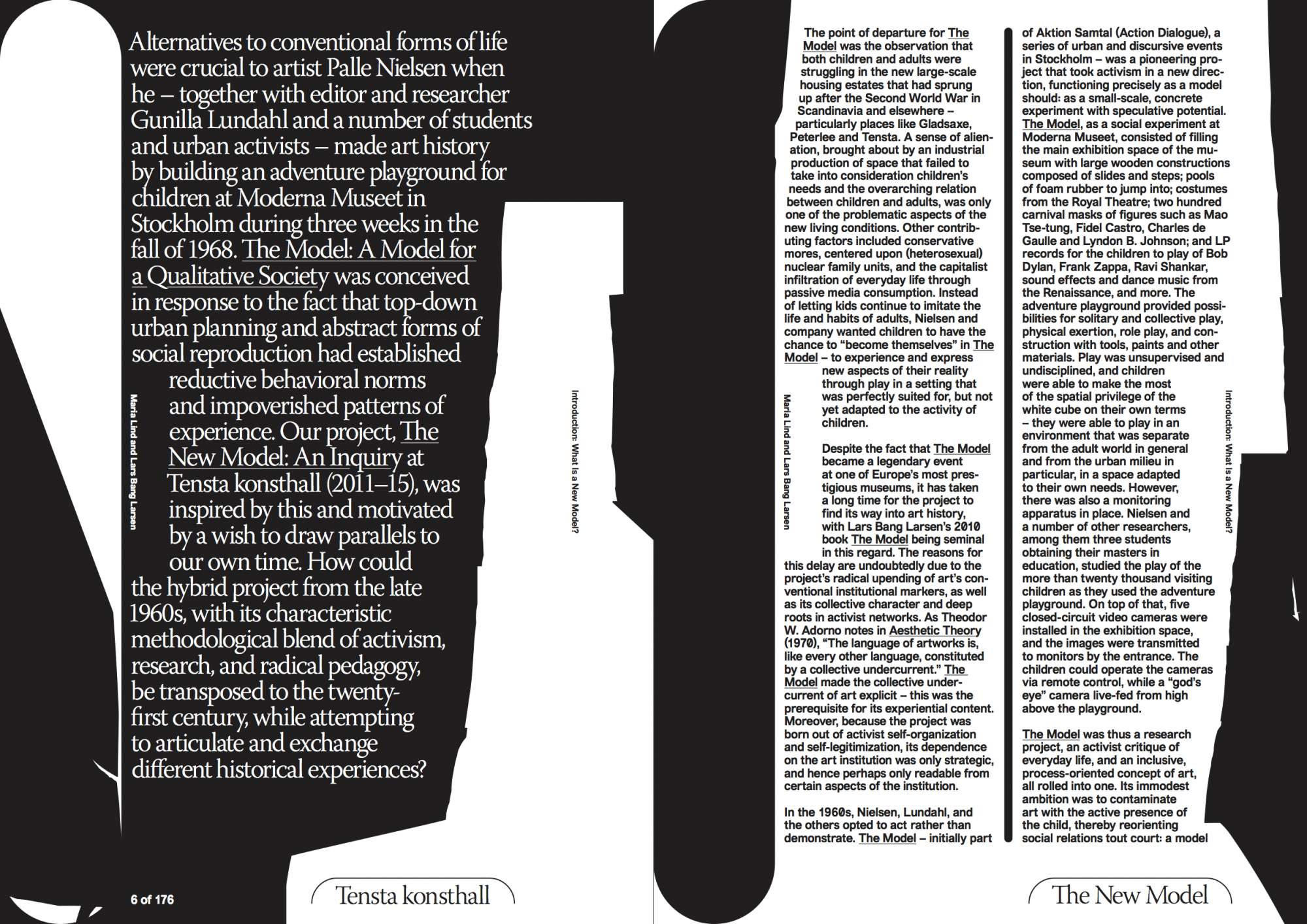 Half a century later, through a series of seminars, exhibitions, and new artworks, The New Model revisited this utopian intervention, reviving discussions of public participation, children’s agency, and shifting ideals of collective being. Curated by Lars Bang Larsen and Maria Lind, this inquiry took place from 2011 to 2015 at and around Tensta konsthall in one of Stockholm’s late modernist suburbs. Through essays, exhibition documentation, and dialogues with the participating artists—among them Magnus Bärtås, Hito Steyerl, Ane Hjort Guttu, and Dave Hullfish Bailey—this volume charts the evolution of two artistic, curatorial, and institutional experiments.