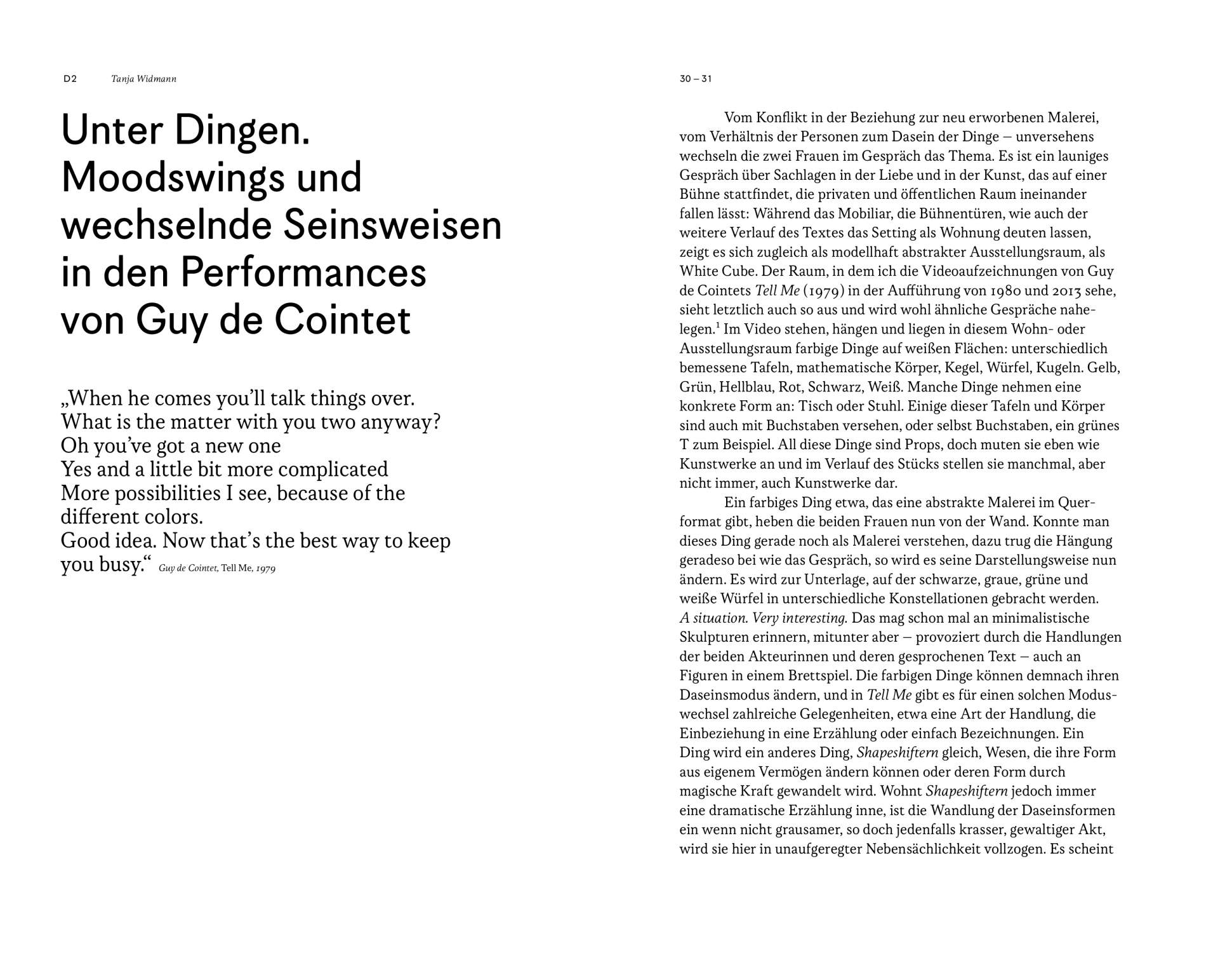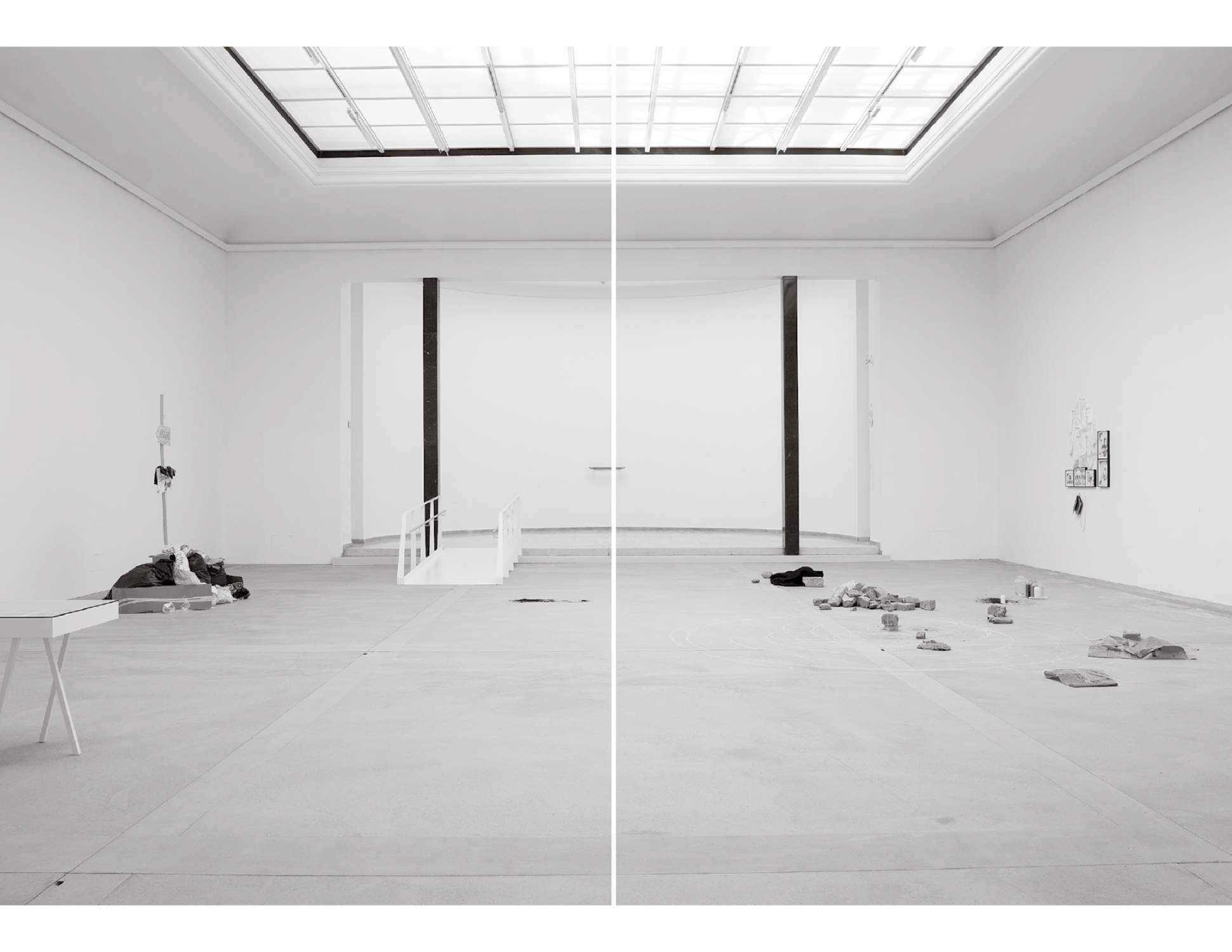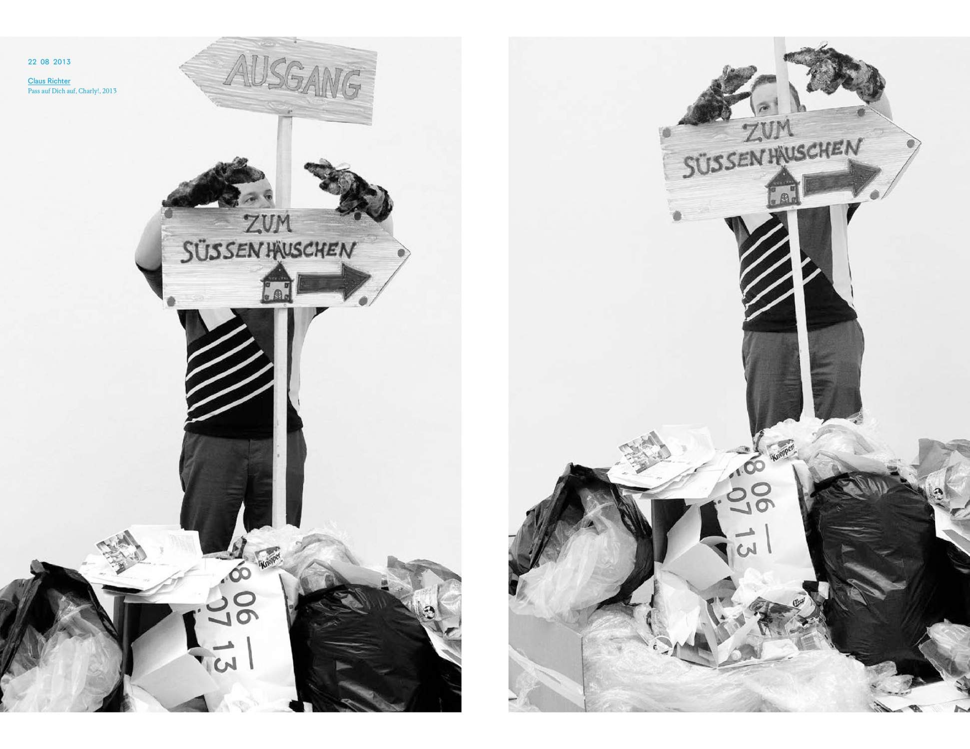 Both exhibitions are united by an activating dialogical confrontation of recent, performative practices and performances dealing with the main works of historical forerunners. Throughout the respective exhibition, two to three works were added, while also parts and objects of the performances remained in the exhibition space, thus the exhibition set-up presented itself as transparent and could be experienced by the audience.