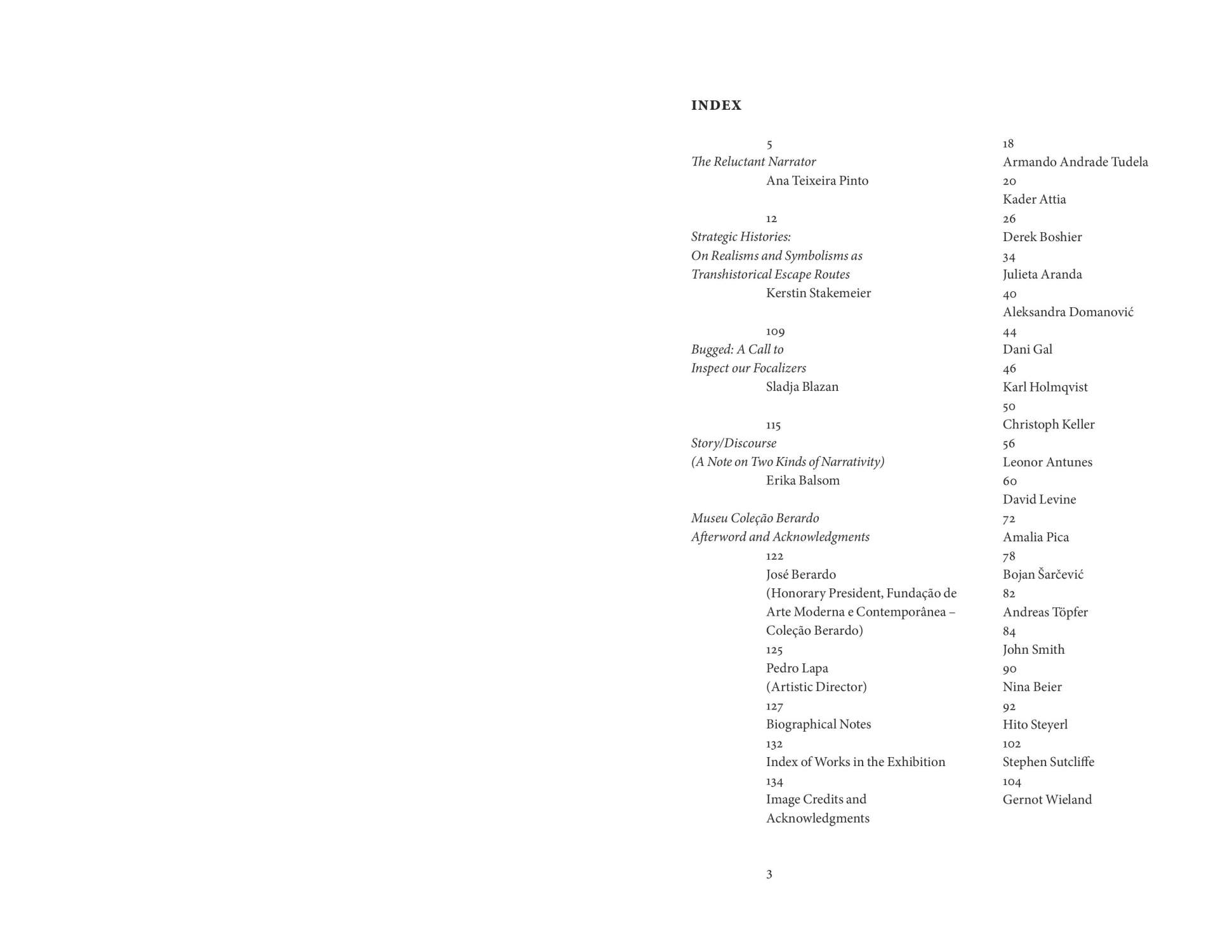 Copublished with Museu Coleção Berardo, Lisbon, on the occasion of the exhibition “The Reluctant Narrator” (October 15, 2014–January 11, 2015) with works by Julieta Aranda, Armando Andrade Tudela, Leonor Antunes, Kader Attia, Nina Beier, Derek Boshier, Aleksandra Domanović, Dani Gal, Karl Holmqvist, Christoph Keller, David Levine, Amalia Pica, Bojan Šarčević, John Smith, Hito Steyerl, Stephen Sutcliffe, Andreas Töpfer, Gernot Wieland.
