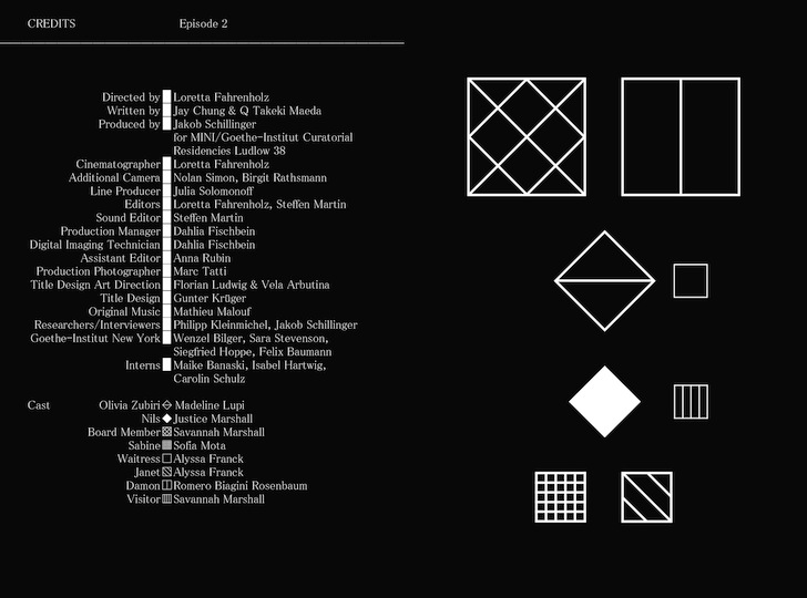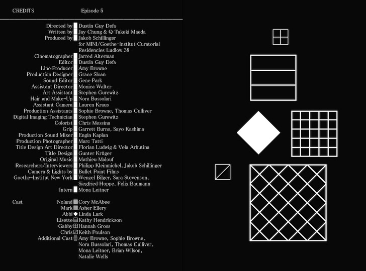 Set in the New York art world, The Sixth Year reinterprets the format of a TV series. In five episodes, a fictionalized narrative stages the backstage and theatricalizes the social interactions and power games, the aspirations, passions, and everyday realities of the field.