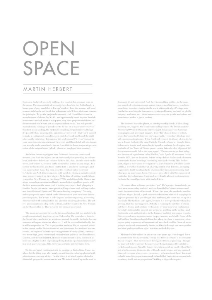 On Saturday 28 August, 1999, against a background of puffing industrial plumes, a pinkish-blue sky, and the sound of bongo drum beats, Aleksandra Mir, dressed in a smart white dress and with American flag in hand, scaled the side of a moonscape of sand dunes and makeshift craters to become the first woman on the moon. The performance First Woman on the Moon marked the beginning of Mir’s exploration of outer space as she staged a moon landing by transforming a Dutch beach into the moon’s surface using the help of local people and heavy machinery.