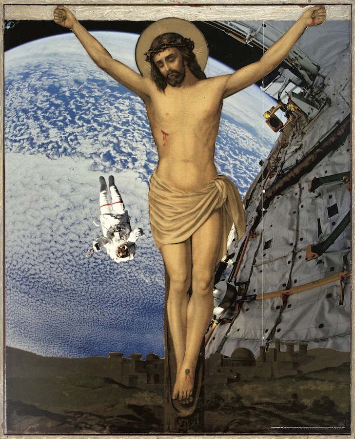Mir’s projects offer her own take on popular cultural myths and historical events, by combining religious iconography with NASA imagery or symbols of space travel. Her work reflects on these events that span half a millennium of human—mostly male-dominated—quest, transforming or deconstructing them into a make-believe world of her own. Mir resists and modifies; her work creates its own authenticity and truth.