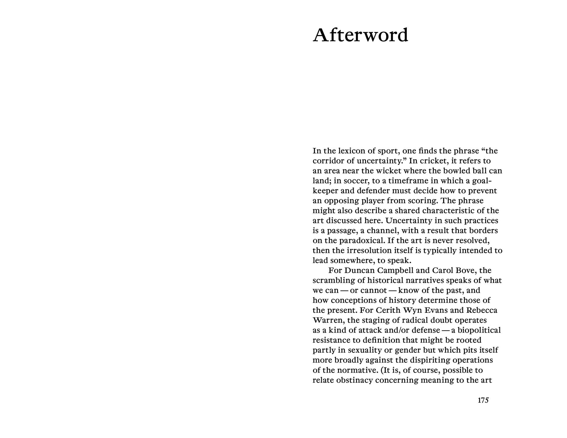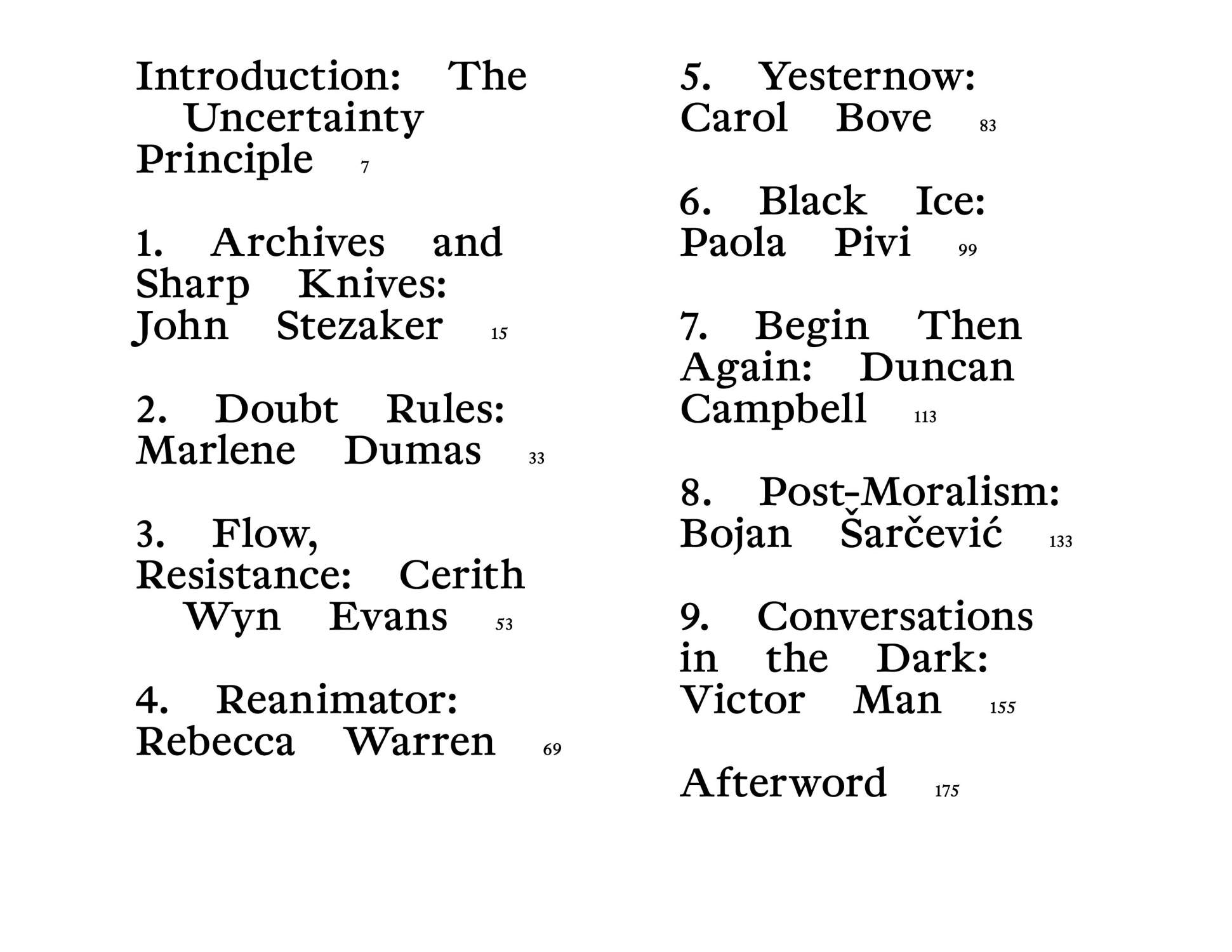 Within the realm of science, the uncertainty principle speaks of the fundamental limits of knowledge and measurement vis-à-vis the external world, and how the very act of seeing alters what is seen. Martin Herbert’s The Uncertainty Principle is a collection of essays that reveals layers of unknowing and open-endedness within a diversity of contemporary art practices since the 1970s. If a work of art is always completed by the viewer, as Marcel Duchamp put it, then the works considered here equate completion with construction. In navigating us through a succession of artists’ approaches, Herbert also discloses how constructed experiences of “not knowing” can lead to deep engagements with a range of specific issues and themes: from history to politics, from epistemology to mortality.