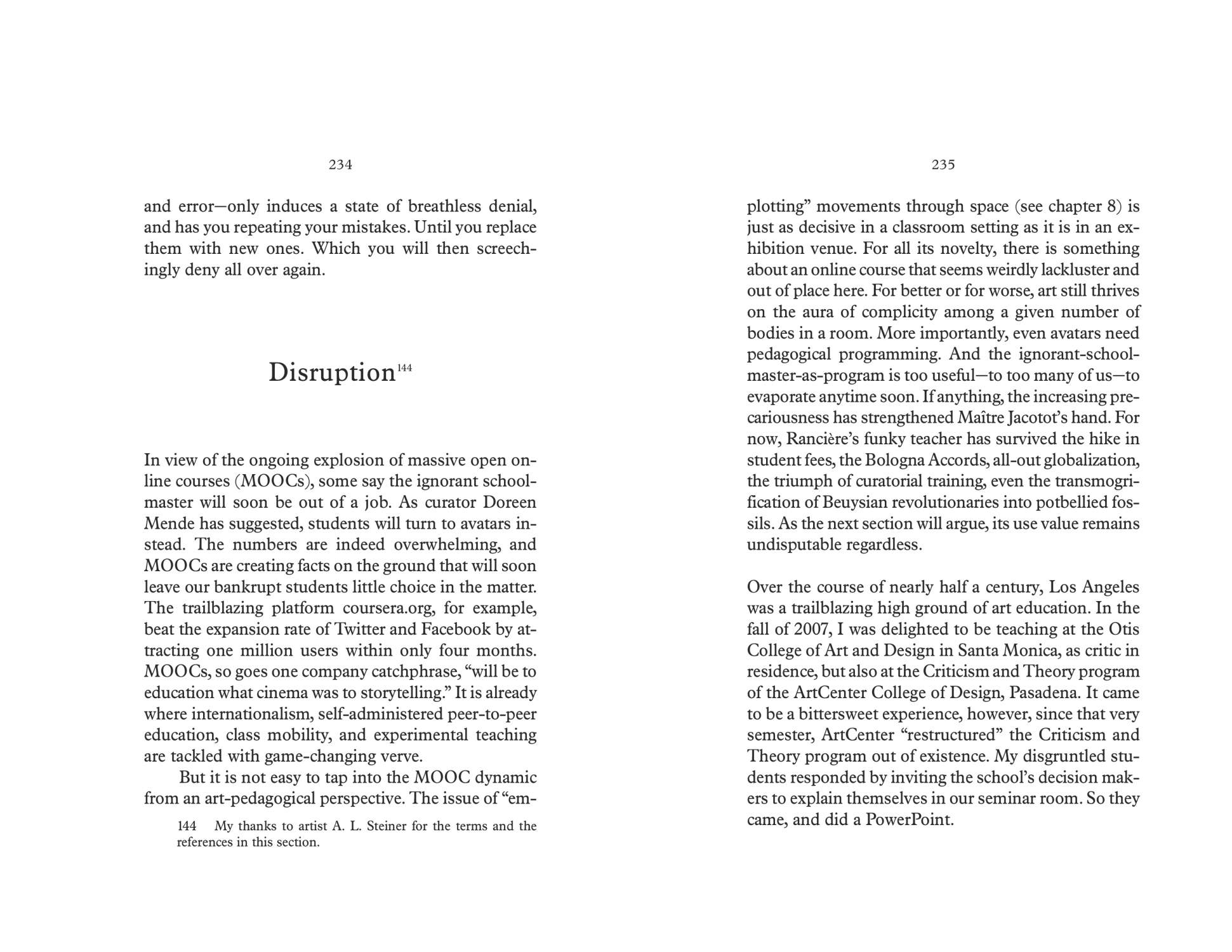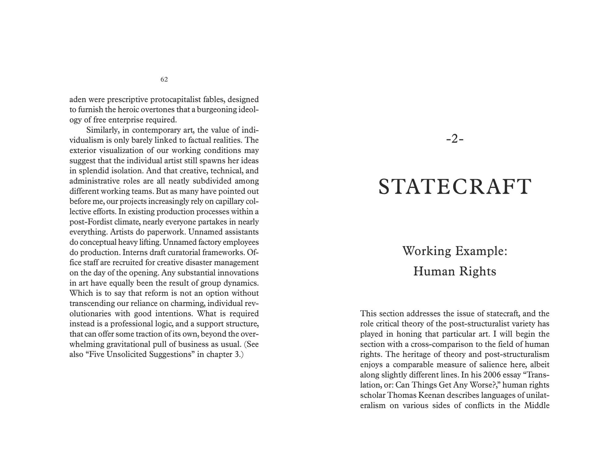 Traction argues that contemporary art is defined by a moral economy of indeterminacy that allows curators and artists to imagine themselves on the other side of power. This self-positioning, in turn, leaves us politically bankrupt, intellectually stagnant, and aesthetically predictable. In his memoir-polemic, curator and writer Tirdad Zolghadr candidly reflects on his own experiences and the work of others. He also drafts possibilities for a logic and a support structure that can offer some purchase of their own, beyond the gravitational pull of business as usual. Ultimately, Traction calls for a renewed sense of profession, somewhere within the corridors of power where, for better or worse, contemporary art has long arrived.