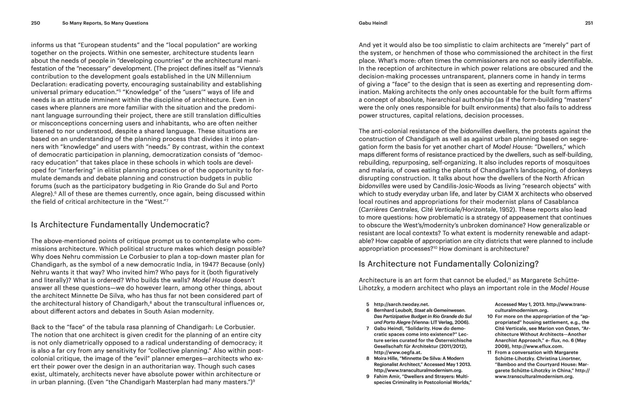 Based on the findings of an interdisciplinary research project, Transcultural Modernisms maps out the network of encounters, transnational influences, and local appropriations of an architectural modernity manifested in various ways in housing projects in India, Israel, Morocco, and China. Three case studies, realized in the era of decolonization, form a basis for the project, which further investigates specific social relations and the transcultural character of building discourses at the height of modernism. Rather than building on the notion of modernism as having moved from the North to the South—or from the West to the rest of the world—the emphasis in Transcultural Modernisms is on the exchanges and interrelations among international and local actors and concepts, a perspective in which “modernity” is not passively received, but is a concept in circulation, moving in several different directions at once, subject to constant renegotiation and reinterpretation. In this book, modernism is not presented as a universalist and/or European project, but as marked by cultural transfers and their global localization and translation.