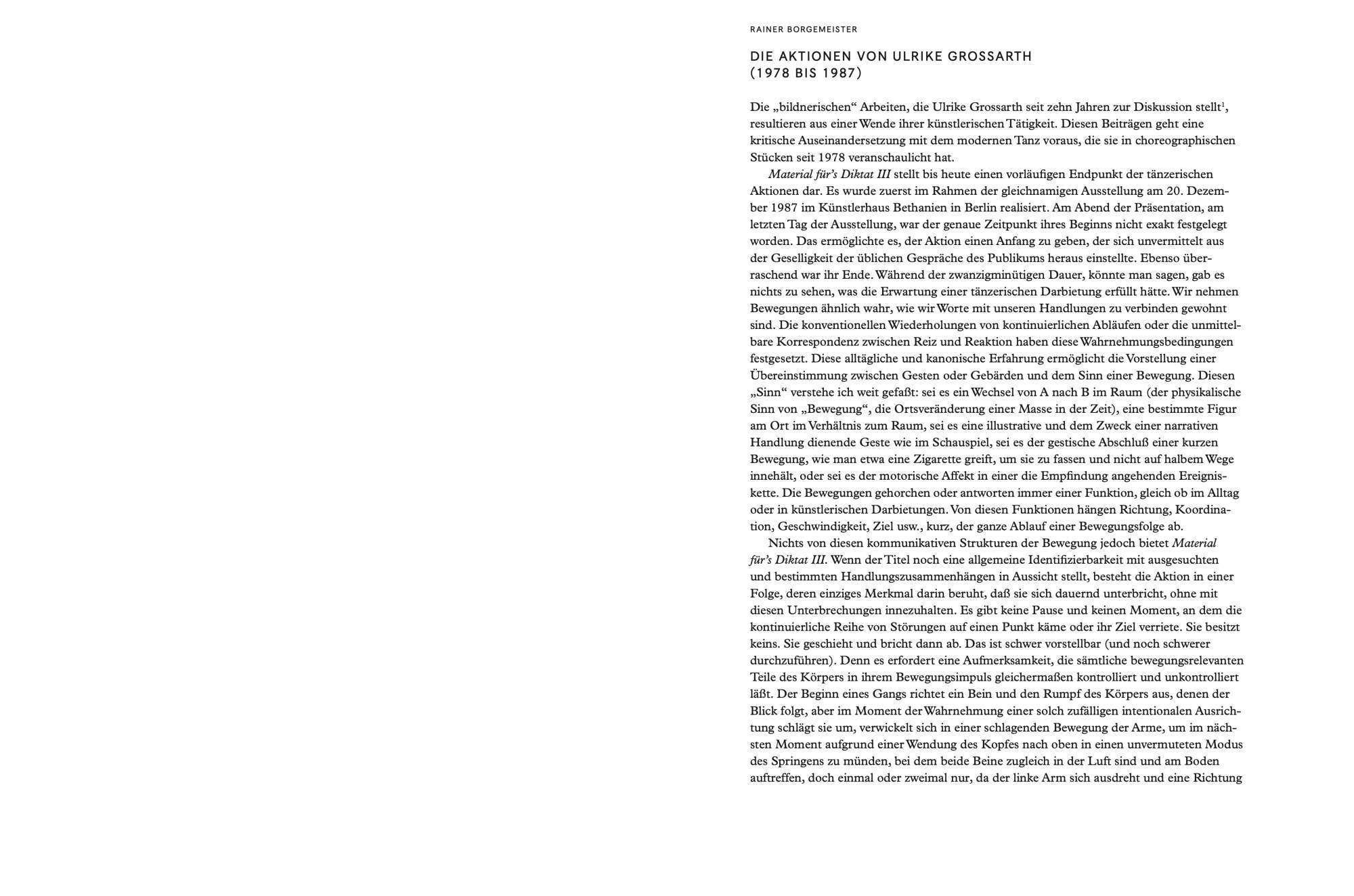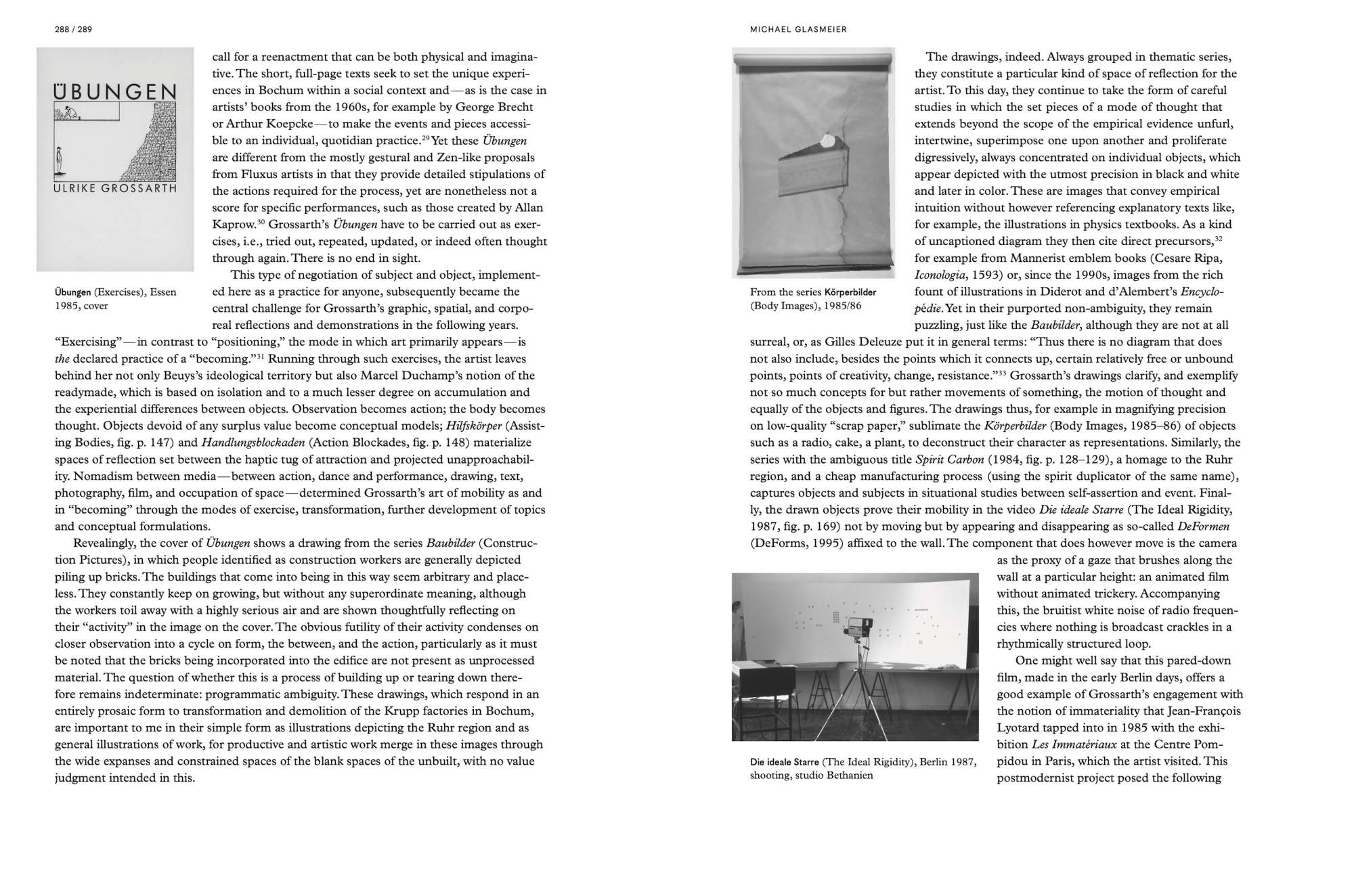 This book is published on occasion of Ulrike Grossarth’s eponymous retrospective at the Generali Foundation in Vienna. Both the book and the exhibition trace the evolution of Gossarth’s practice, with a particular emphasis on her training as a dancer in the 1970s, to draw connections between the early years with her sculptural settings and actions and her most recent work, which engages with history more generally.