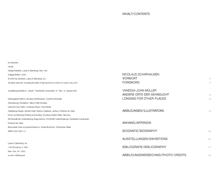 This book was published on the occasion of the exhibition “Urlaub” at Frankfurter Kunstverein, May 27–August 6, 2000.