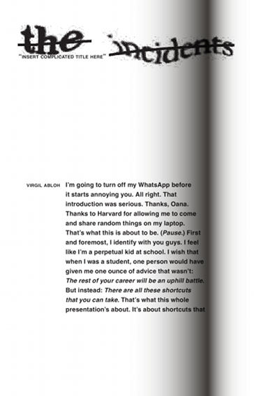 “What’s my DNA?” Virgil Abloh asks to an overflowing auditorium at the Harvard University Graduate School of Design. Abloh goes on to provide his audience with a “cheat code”—advice he wishes he had received as a student. He then unpacks a series of “shortcuts” for cultivating a “personal design language.” Trained as an architect and engineer, Abloh has translated the tools and techniques of his student days into the world of fashion, product design, and music. His label, Off-White, works in seeming contradictions, marrying streetwear with couture, collaborating with brands like Nike, Ikea, and the Red Cross; musicians like Lil Uzi Vert and Rihanna; and “mentors” like Rem Koolhaas. Impervious to hurdles (“They literally don’t exist.”), Abloh takes us behind the scenes of his design process, sharing the essentials of editing, problem-solving, and storytelling. He paints a picture of his DNA, and then flips the question: What’s your DNA?