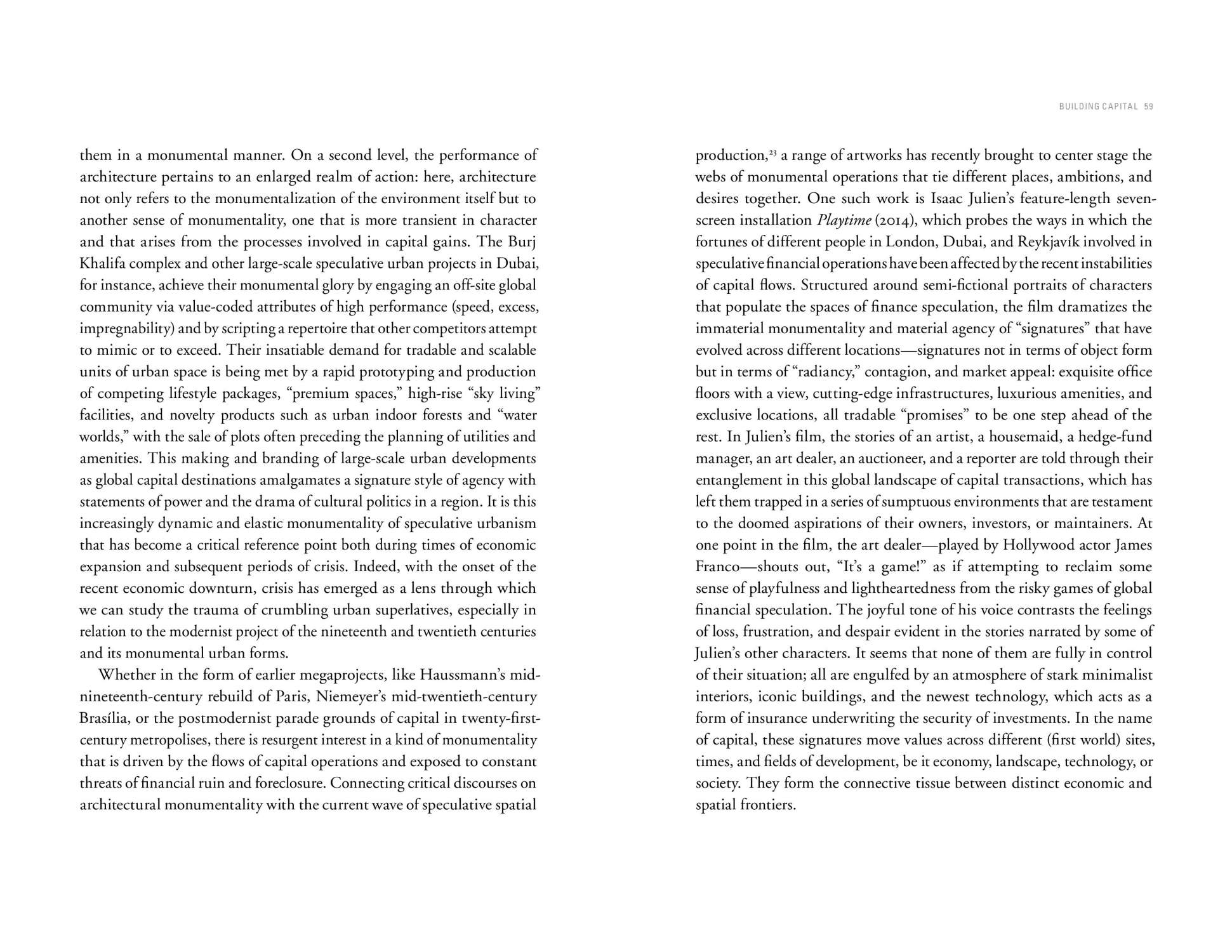 Assemblies, gathering places, and agora-like situations have become popular sites for contemporary art. At the heart of these arenas is the search for new ways to counter the crisis-ridden experience of homo economicus—the pervasive and alienating marketization of all aspects of our lives. A great deal of hope is being placed on the potential of social formations enabled by new technologies of connectivity and exchange. Artists and cultural producers are at the forefront of testing the viability of transgressive actions such as coworking, crowdfunding, and open-source provisions. At the same time, it is apparent that global capitalism is expanding into multipolar constellations of top-down and bottom-up economic governance.