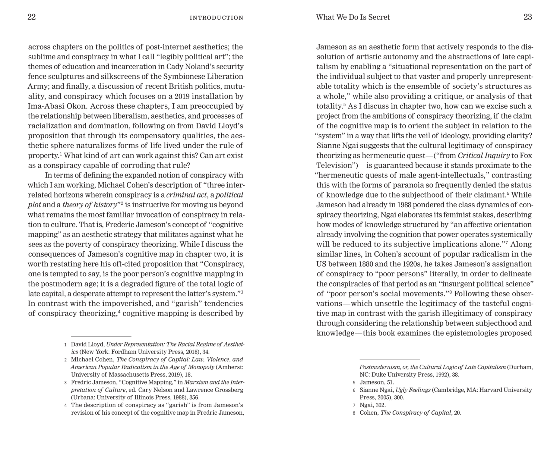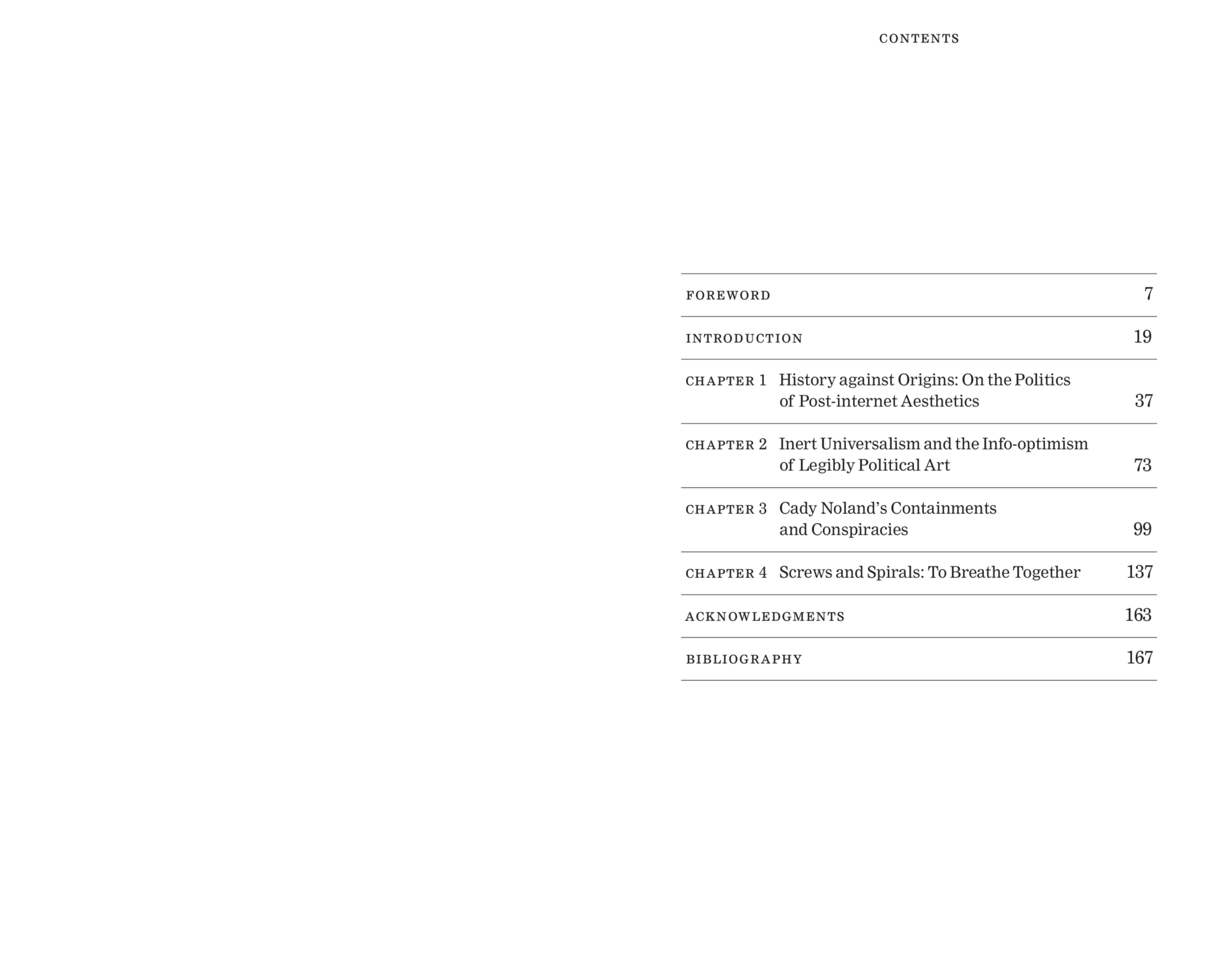 “In a time of rampant conspiracy theories and actual criminal conspirators in power, what do we make of the conspiracy as a practice conceived from below? Across trenchant analyses that range from the contemporary resurfacing of fascist aesthetics to the radical work of artists including Cady Noland and Ima-Abasi Okon, Larne Abse Gogarty gives reason to believe that art can again be a space of insurgent interventions rather than one of liberal reconciliation.”