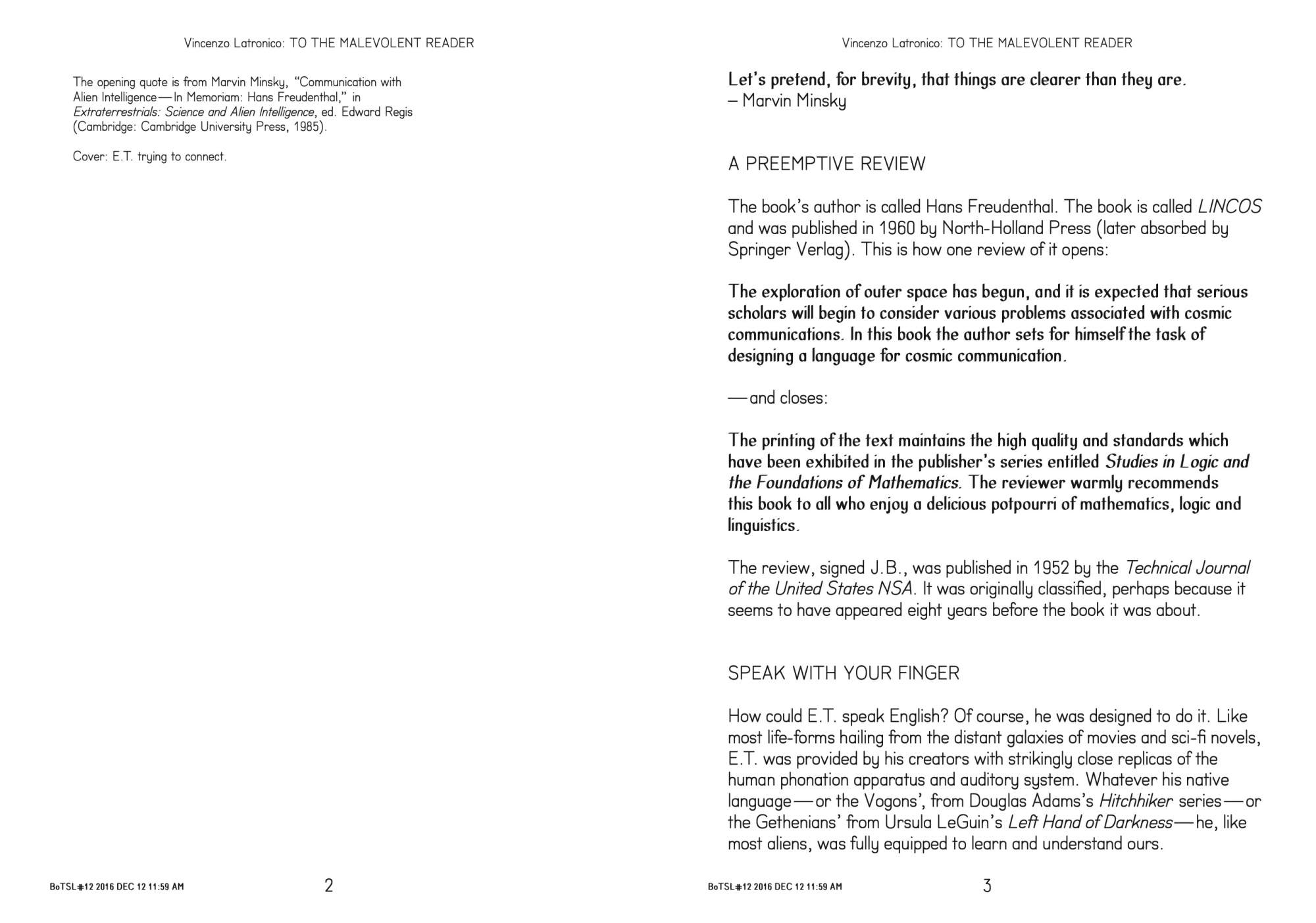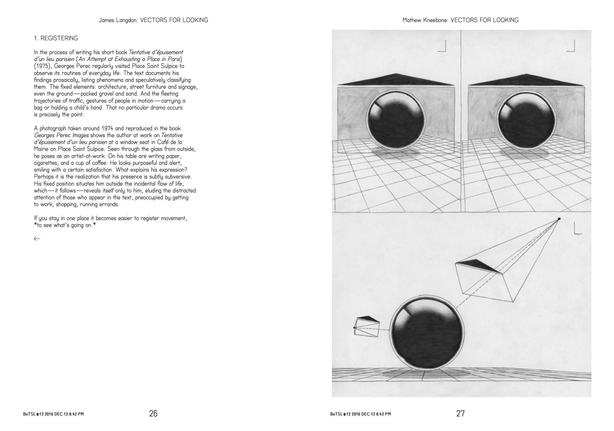 This issue comprises various outlooks on “perspective.” This might be taken to mean something as specific as a particular opinion or as general as an axonometric projection; in short, different ways and means of looking at the world. And so we find Vincenzo Latronico attempting to get in touch with E.T., a collection of Lucy McKenzie’s illusory quodlibets, a conversation between Jumana Manna and Robert Wyatt on art and ethics, a timely analysis of “Lifestyles of the Rich and Famous” by Sarah Demeuse, along with other points of view from Mark de Silva, Jocelyn Penny Small, Abigail Reynolds, James Langdon & Mathew Kneebone, Johan Hjerpe, and the inimitable 9mother9horse9eyes9.