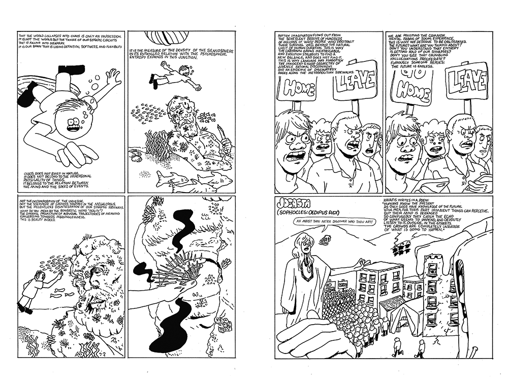 The authors included here have shaped the varied concerns and urgencies of e-flux journal since 2008. As a theory-driven art journal made up entirely of hypertext and digital images and embraced by academic circles, we sometimes wonder about the artistic and sensual use of text and image. Does the thinking of some of our favorite authors also speak to a place beyond floods of automatic links and references and rectangular photographic portals? To a broader and more applied artistic domain like the imaginative sensibility of illustration, where entire worlds arise from the simple and deliberate placement of lines on paper?