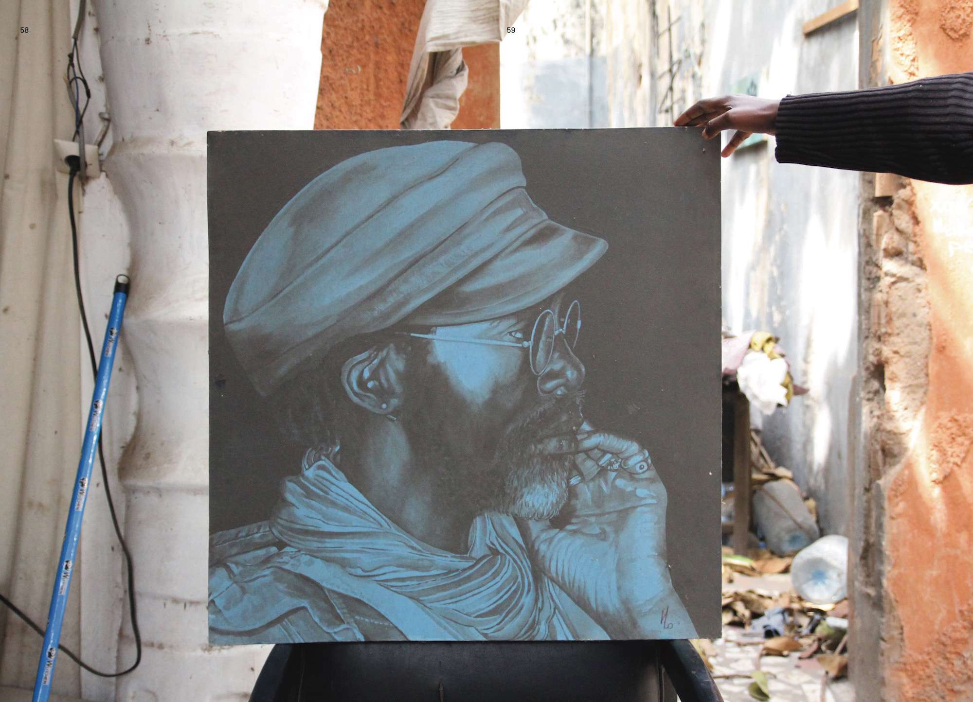 From the establishment of Laboratoire Agit’Art to the present, Samb has produced an extensive body of work from which emerges a fluid exchange between objects, the artist, and audience. His work, although nontraditional and unconventional, combines African artistic traditions—where importance is placed on the spoken word and performative actions—with direct political action.