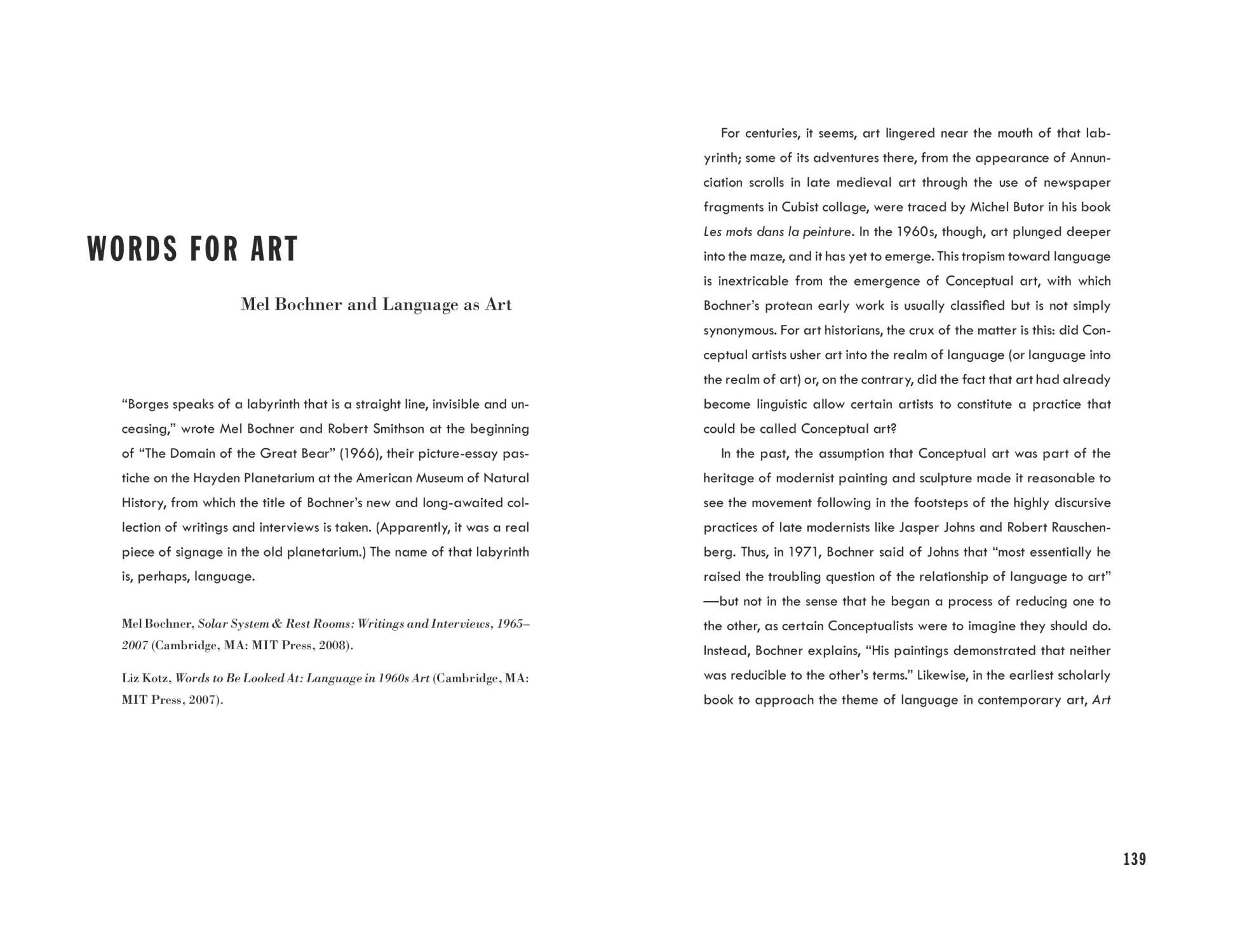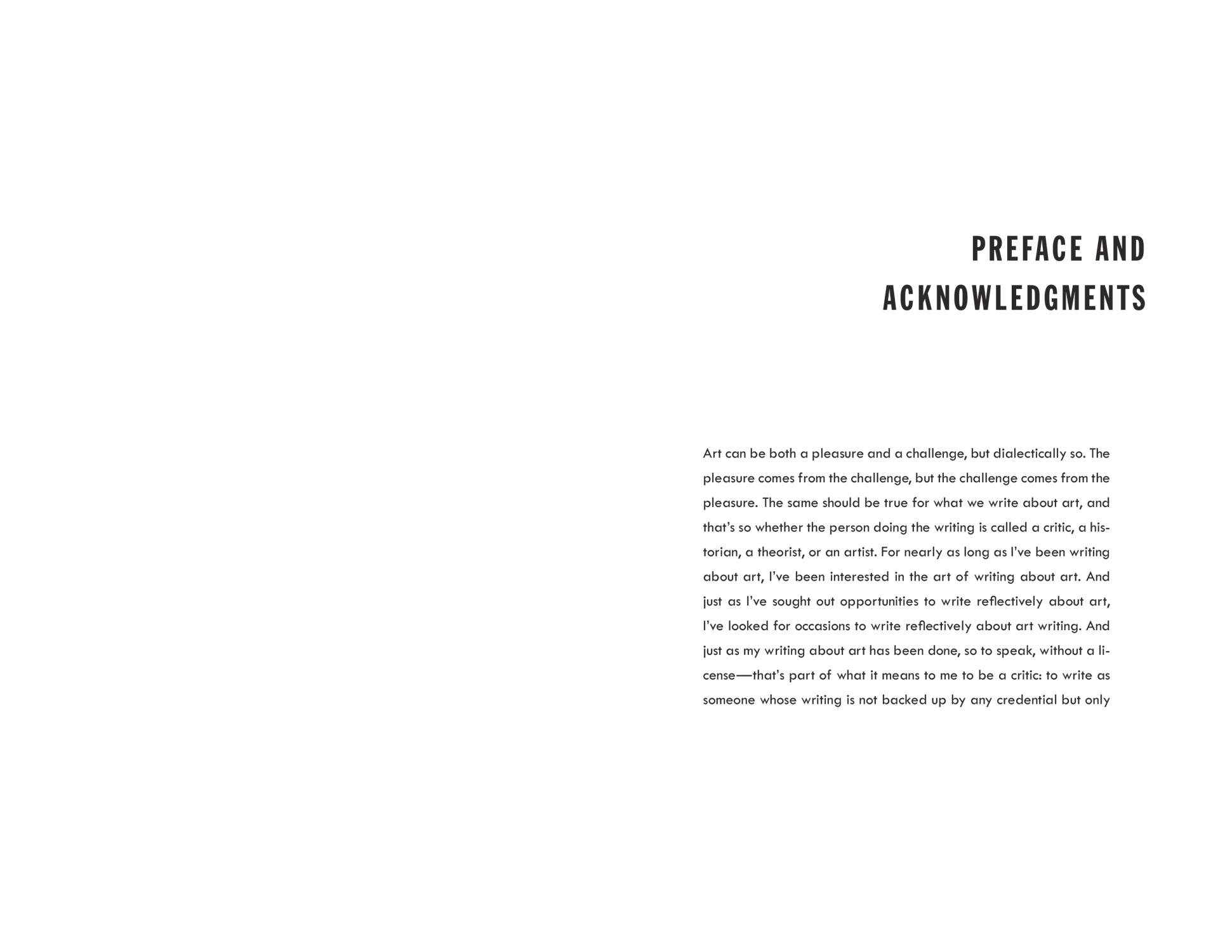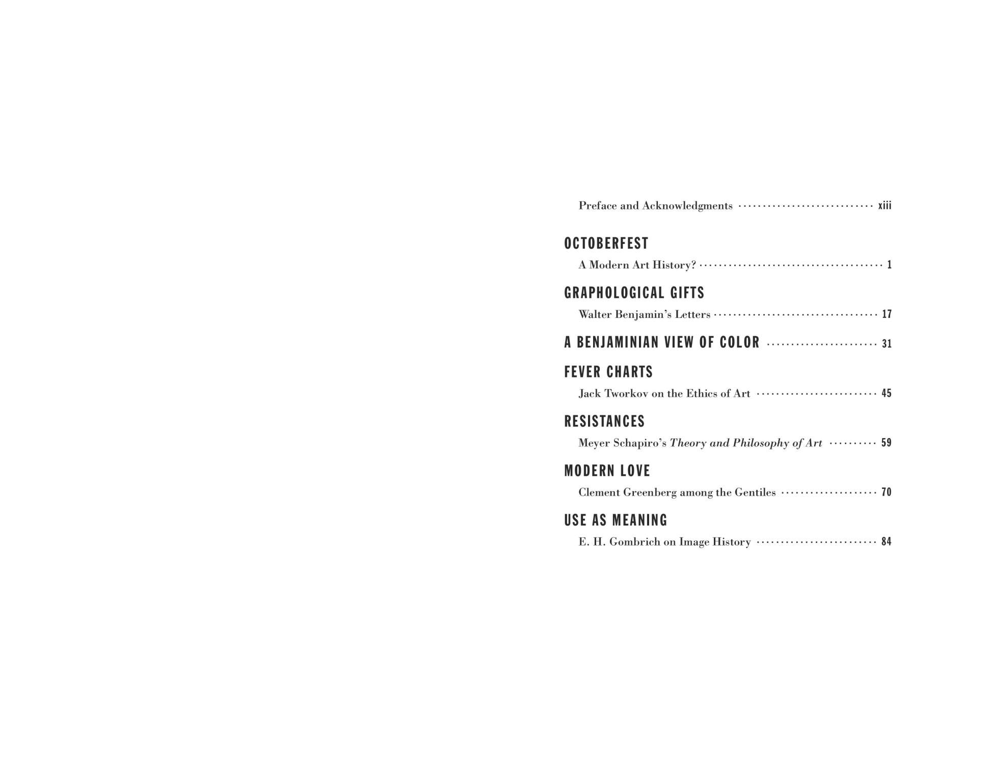 By weaving together evocative and often uncharted episodes from art history, literature, and philosophy, a critical poetic emerges, and an offense of interference and reworked perspectives surfaces from Schwabsky’s essays. Unconcerned with categorical methodologies or totalizing approaches to criticism, Schwabsky writes with nonsequential energy that obliges both artists and critics to complexity, curiosity, and courage.