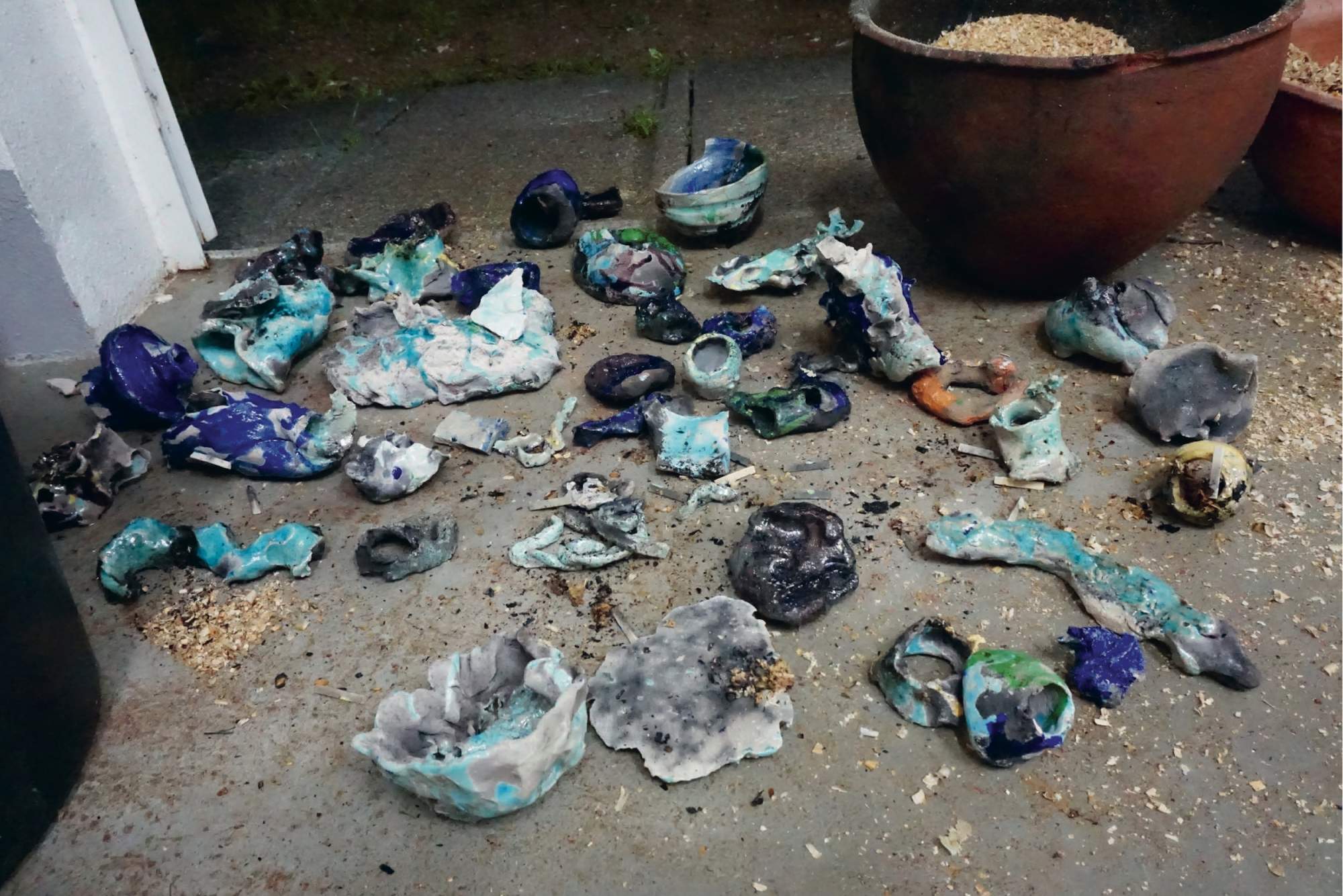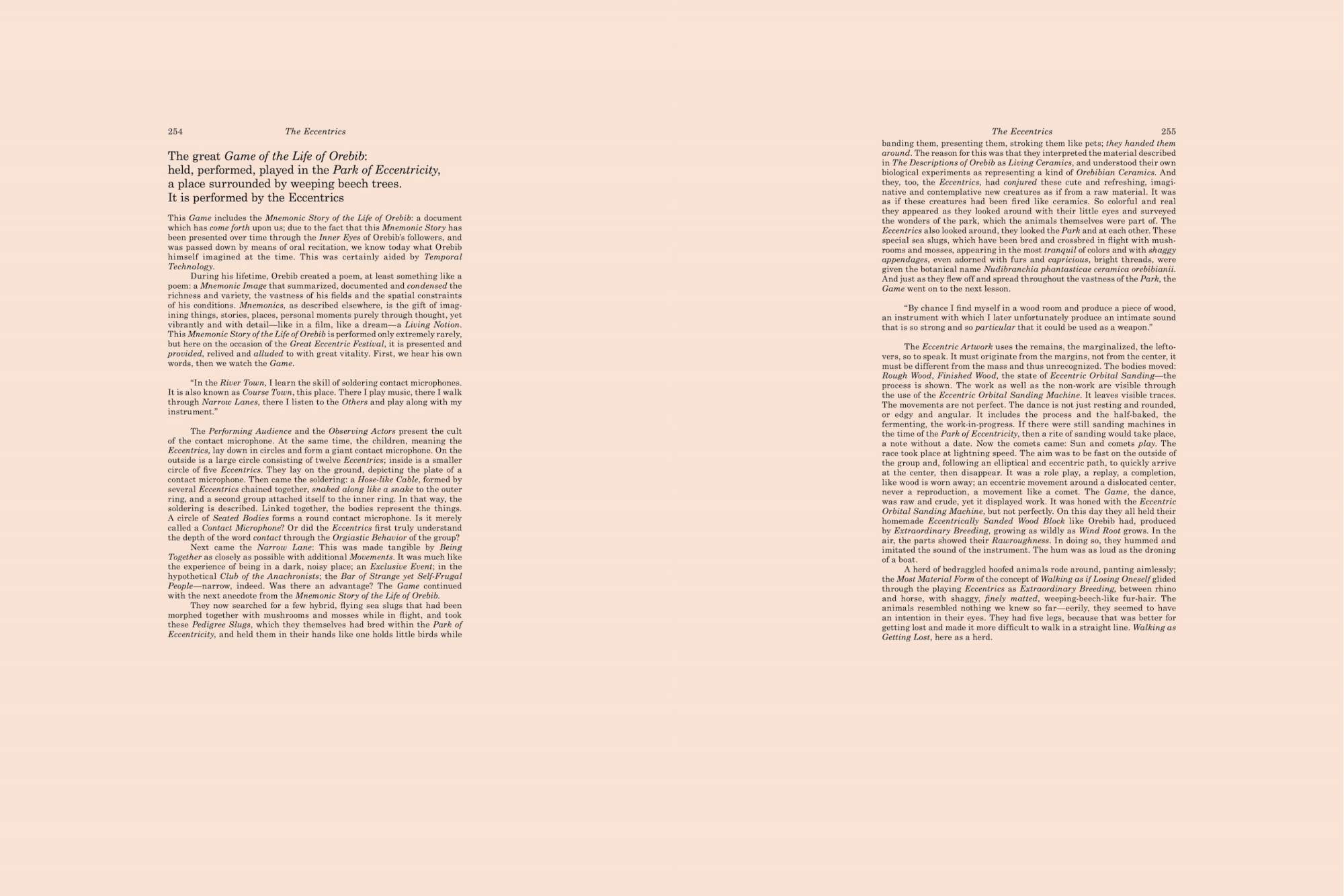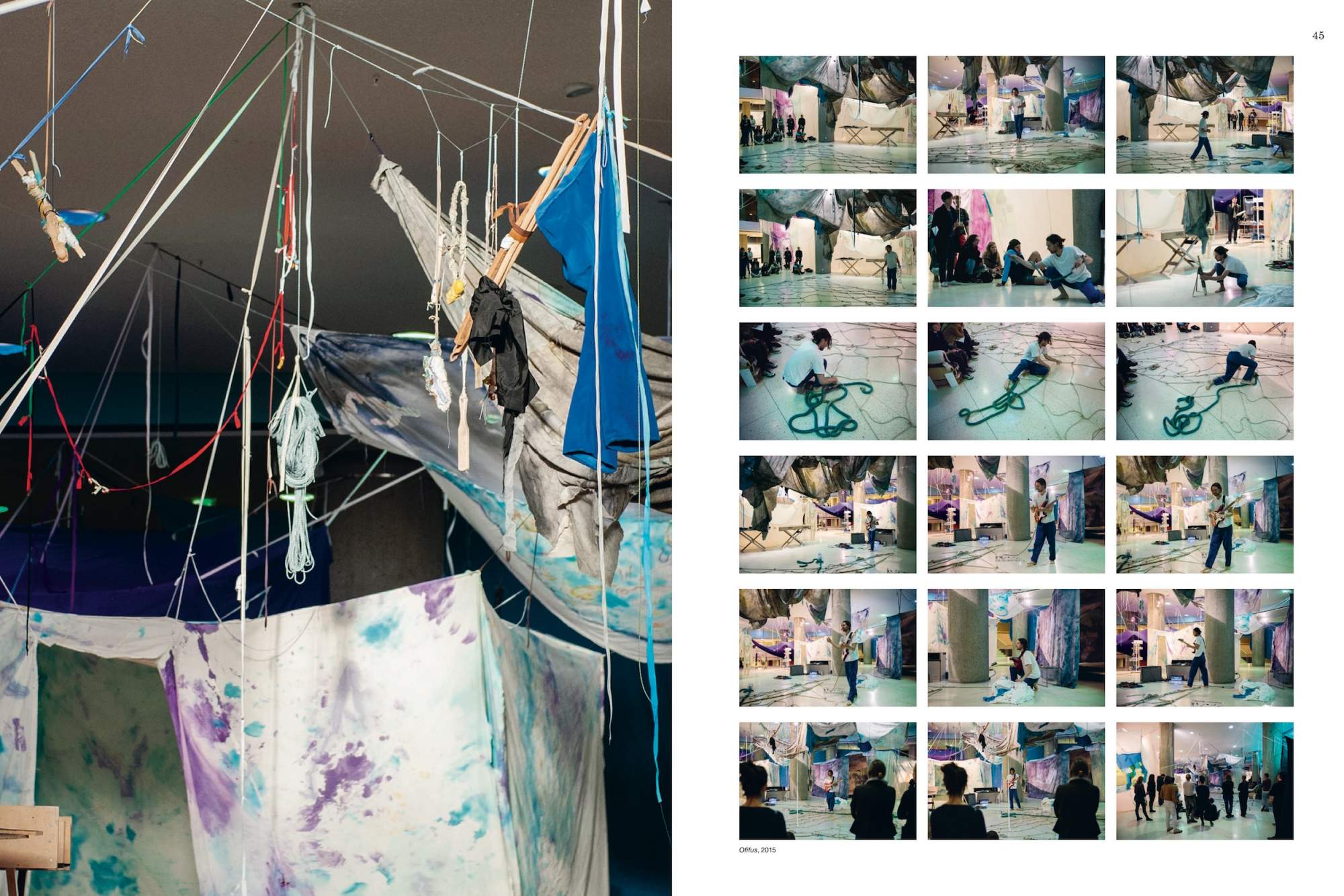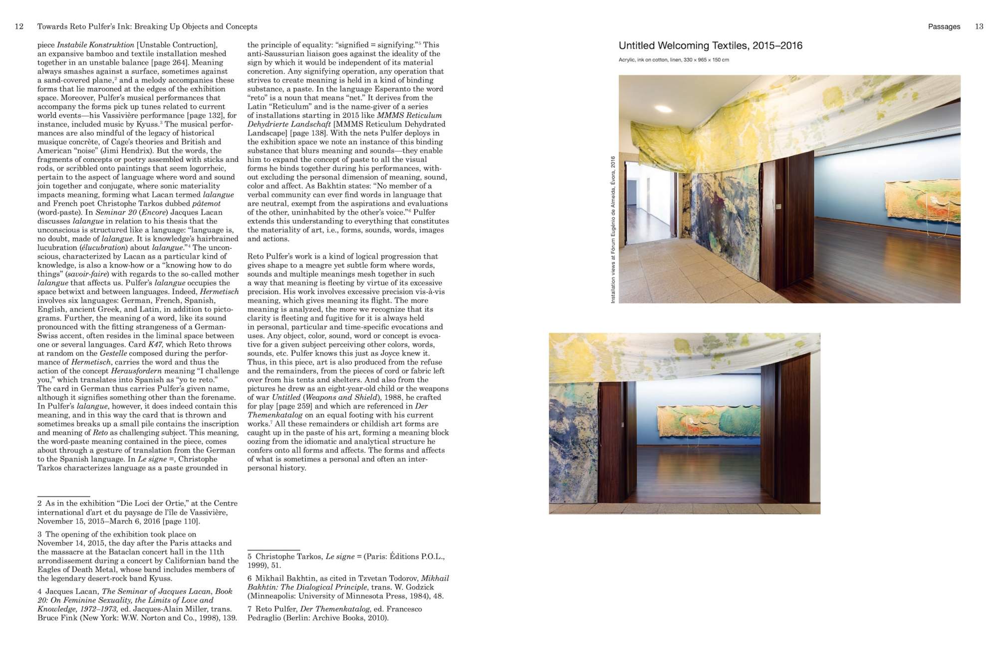 In the style of a catalogue raisonné, Reto Pulfer’s comprehensive monograph, Zustandskatalog: Catalog of States and Conditions, follows the artist’s work over the past fifteen years. Excerpts from the artist’s novels as well as insightful texts by Anselm Franke and Benoît Maire are juxtaposed with 475 documentary photographs of Pulfer’s technical drawings, one-off exhibitions, large-scale installations, and performances. Categories such as living ceramics, food advice, ghostology, synesthesia, and transformation are woven throughout the book, giving unique insight into the ideas and imagination that are part of the work itself.